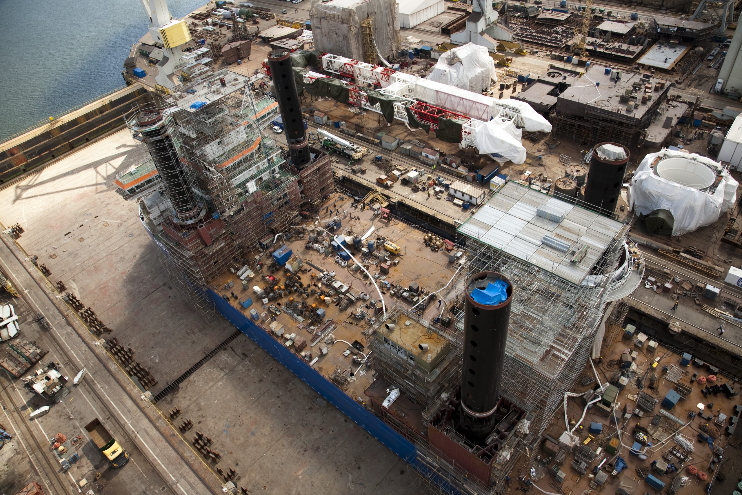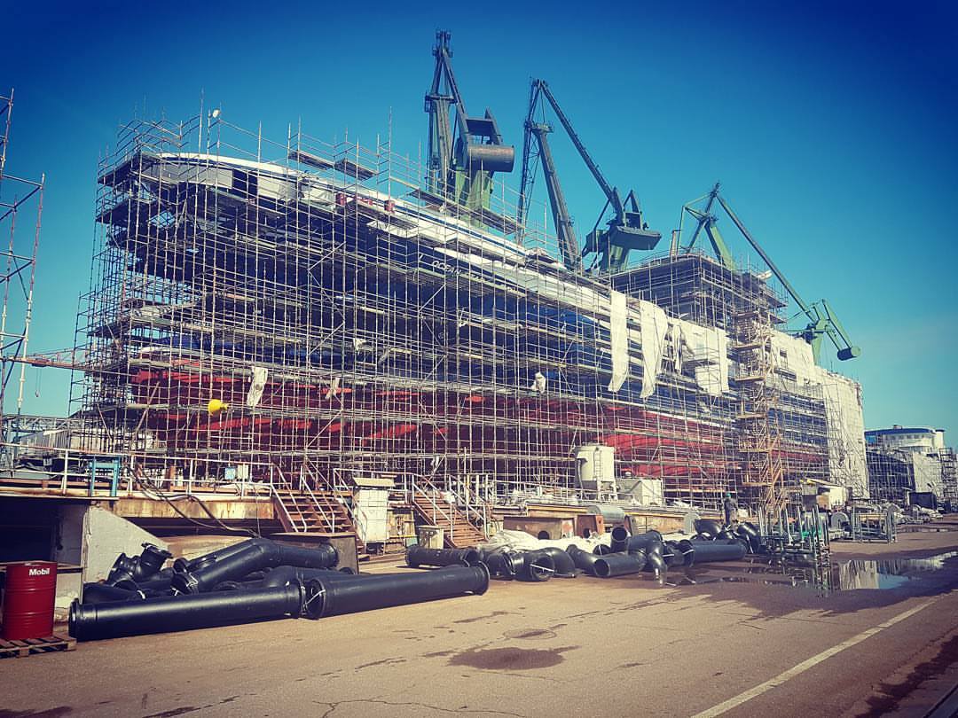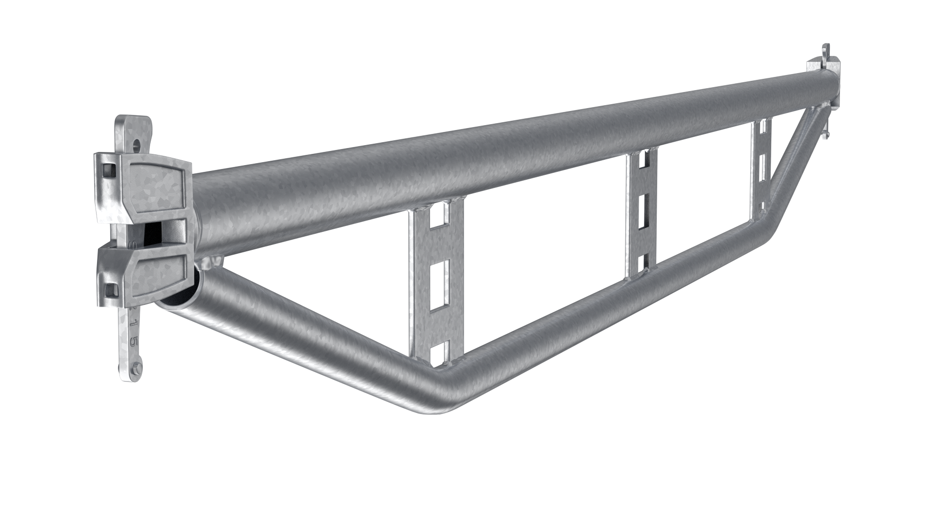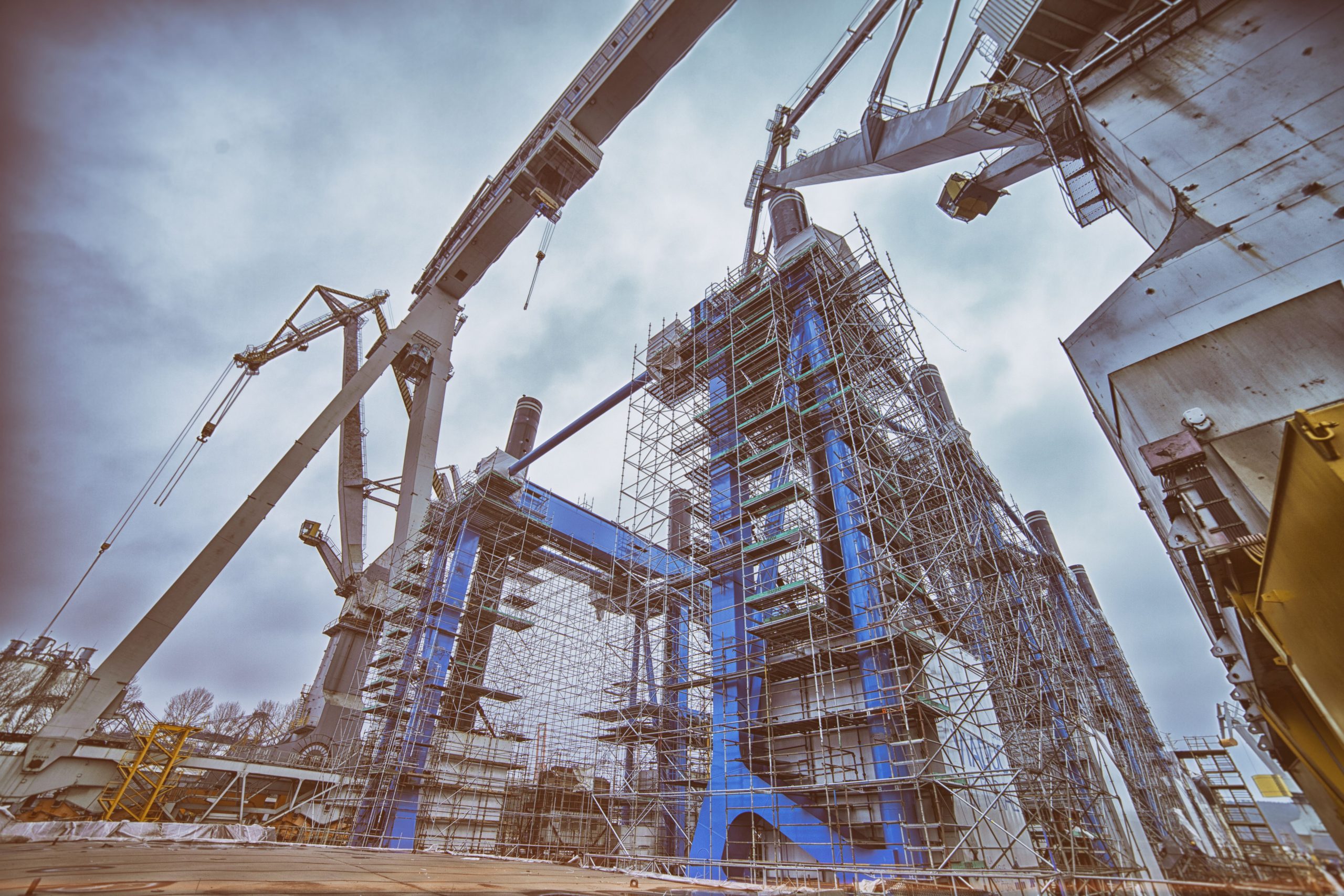 SKYER modular scaffolding is a spatial scaffolding. In the standard façade setup, it comes in field lengths: 3.07 m, 2.57 m, 2.07 m, 1.57 m, 1.09 m, 0.73 m, and in depths of 0.73 m and 1.09 m. The scaffold can be built up to a height of 24 m – without additional static calculations. The vertical elements of the modular scaffolding, called stands, have rosettes (plates) that make the SKYER system possible to build at any angle. The rosettes occur every 0.5 meters, making it easy to set the working platforms at the required level, and as many as 8 elements can be fastened together in a single assembly “node”. The scaffolding grid is also formed by horizontal (transoms) and diagonal (bracing) elements. The transoms, as well as the braces, end with a wedge head, which, combined with a rosette in the rack, creates a stable connection. The SKYER system, through the use of a rosette connection with a wedge, makes the connected elements align at the correct angle. The wide range of possibilities of the scaffolding makes it suitable for use in various industries, including shipbuilding, refining, energy industry and construction.