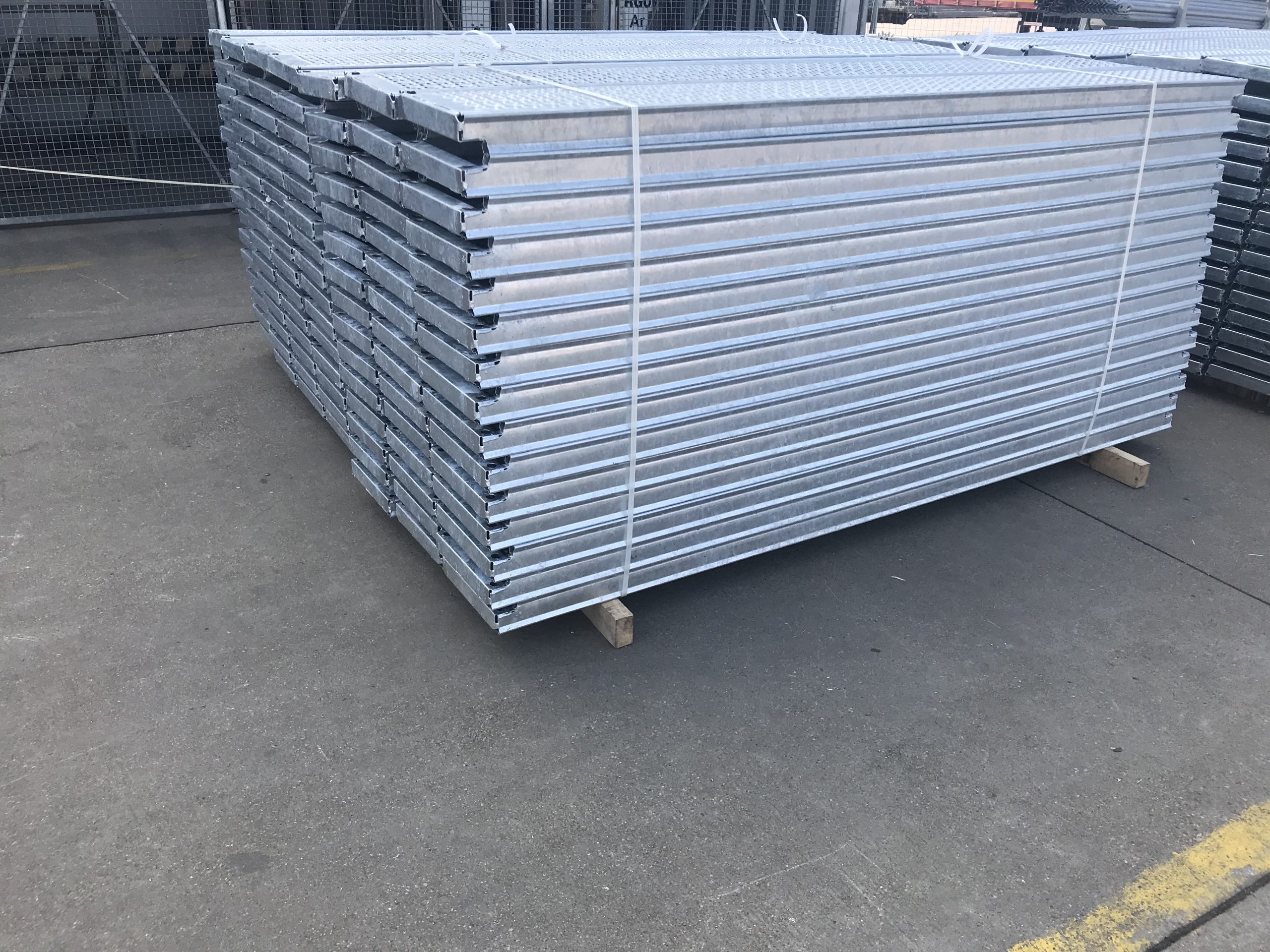 The dimensional accuracy of our platforms is ensured by a technological line for profiling and perforating sheet metal, as well as a robotized welding station. We guarantee short lead times and a competitive price for our products. In addition, we can boast that we are the exclusive manufacturer of steel platforms for RUBO RK wedge scaffolding. Feel free to contact us to learn more about the details of our offer!