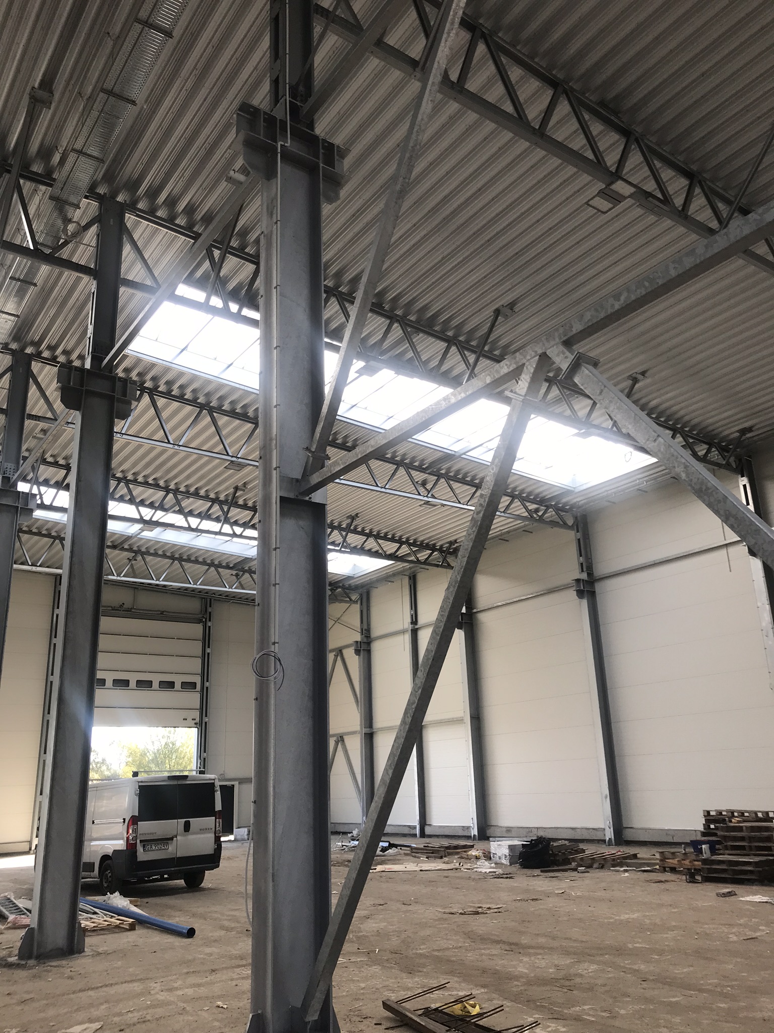 Zajmujemy się wytwarzaniem konstrukcji stalowych hal magazynowych oraz przemysłowych. Jesteśmy w stanie wykonać elementy przestrzenne, o masie nieprzekraczającej 16 ton, oraz długości kilkunastu metrów przy wykorzystaniu suwnic, a także powierzchni produkcyjnej hali.