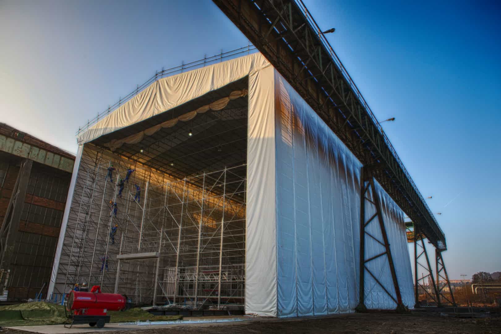 Dzięki systemowi zadaszenia Rubo w dość prosty sposób można zbudować szczelne hale produkcyjne oraz magazynowe na bazie konstrukcji z rusztowań czy dźwigarów. System plandek kederowych pozwala zabezpieczać prowadzone prace remontowe, a także budowlane (rusztowaniowe) przed niekorzystnymi warunkami pogodowymi takimi jak silny wiatr, opady deszczu lub śniegu. Poza tym, dzięki szczelności systemu – w przypadku ogrzewania powietrza wewnątrz – umożliwia on kontynuowanie prac w chwili obniżenia temperatury. W ofercie Rubo-Konstrukcje Sp. z o.o. znajduje się kompletny system osłony i zadaszenia. Wykonujemy także (zajmujemy się ich zgrzewaniem) plandeki kederowe na zamówienie.Nasz dział handlowy pomoże dobrać Ci odpowiednie plandeki kederowe, ich ilość oraz zaoferuje niezbędne wsparcie techniczne.