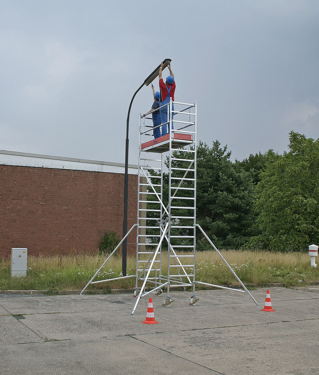 Głównym atutem tego modelu są schody, które zapewniają bezpieczne oraz wygodne wejście na wymaganą wysokość nawet wnosząc cięższe elementy lub narzędzia.